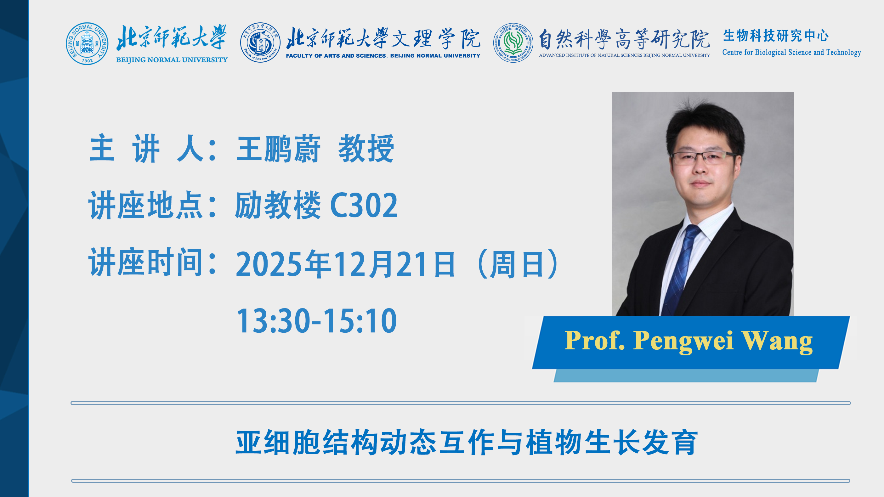 讲座预告|王鹏蔚 :亚细胞结构动态互作与植物生长发育