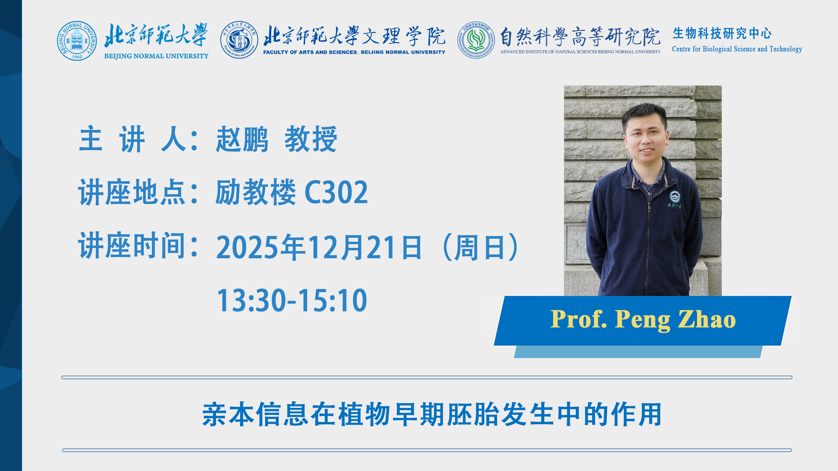 讲座预告|赵鹏:亲本信息在植物早期胚胎发生中的作用